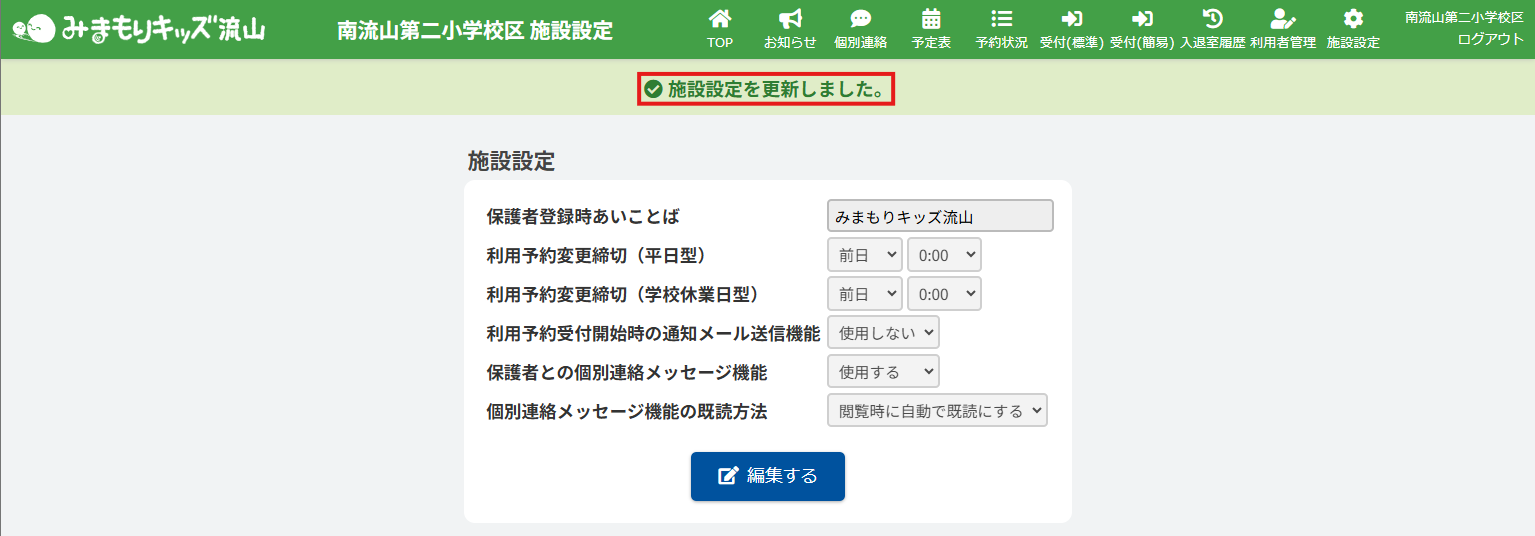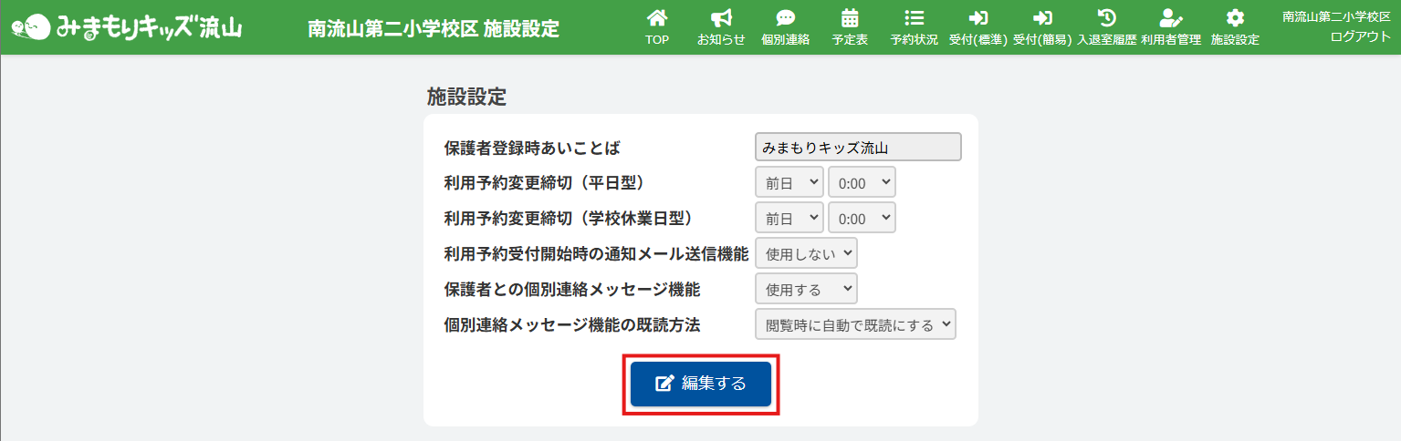 2.施設設定を編集する