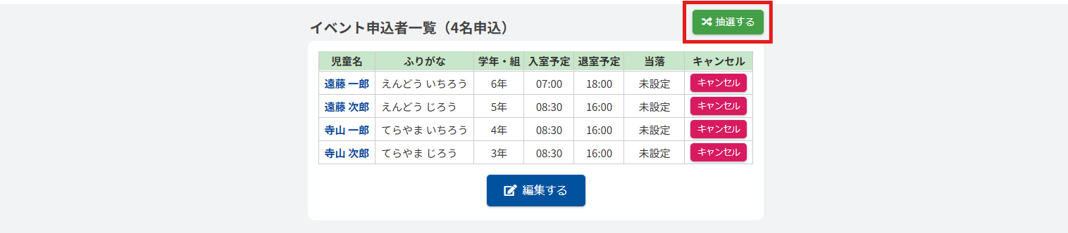 また【編集する】ボタンをクリックして抽選結果を手動で編集することもできます。