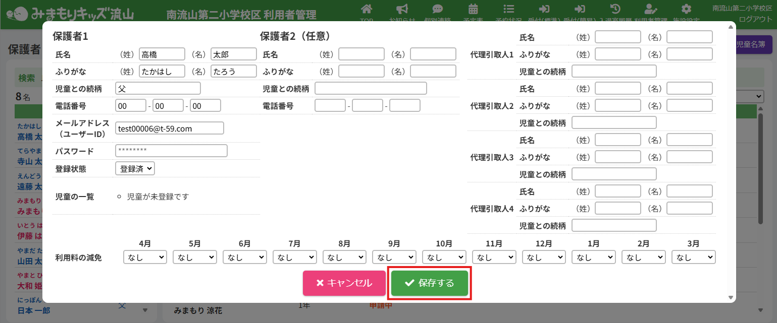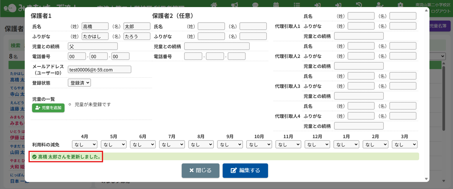 2.保護者の登録内容の編集を実行する