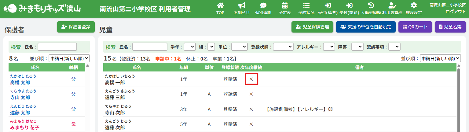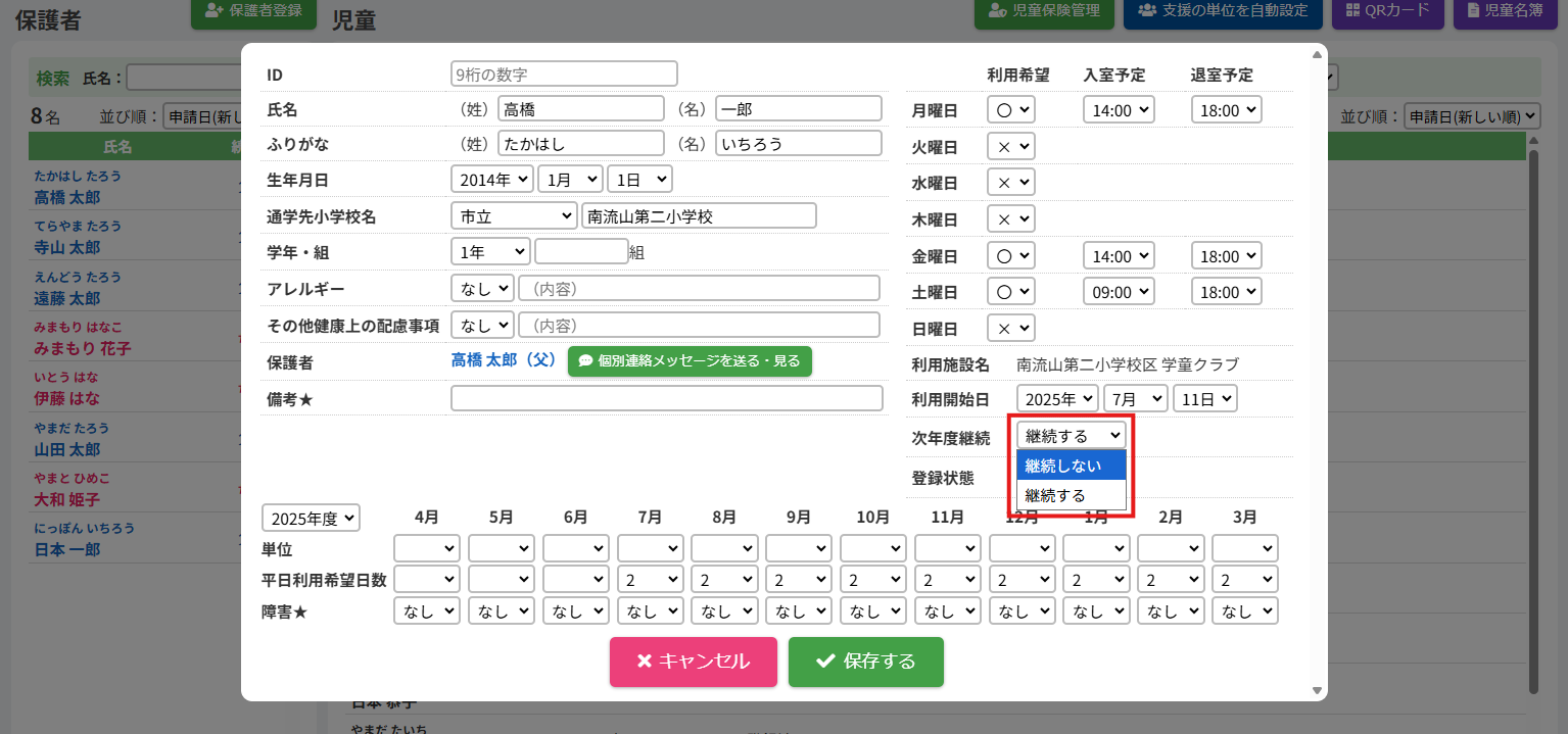 2.児童の次年度継続を変更する