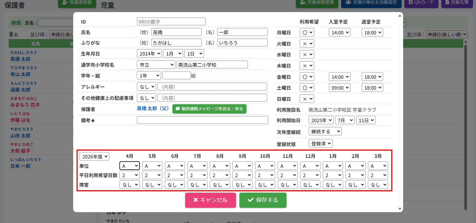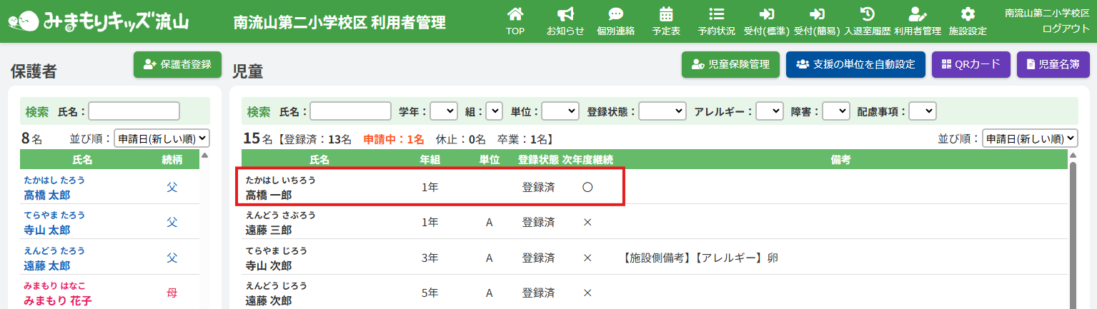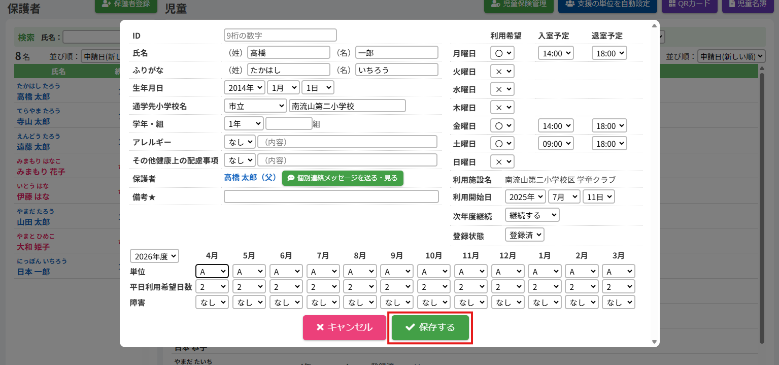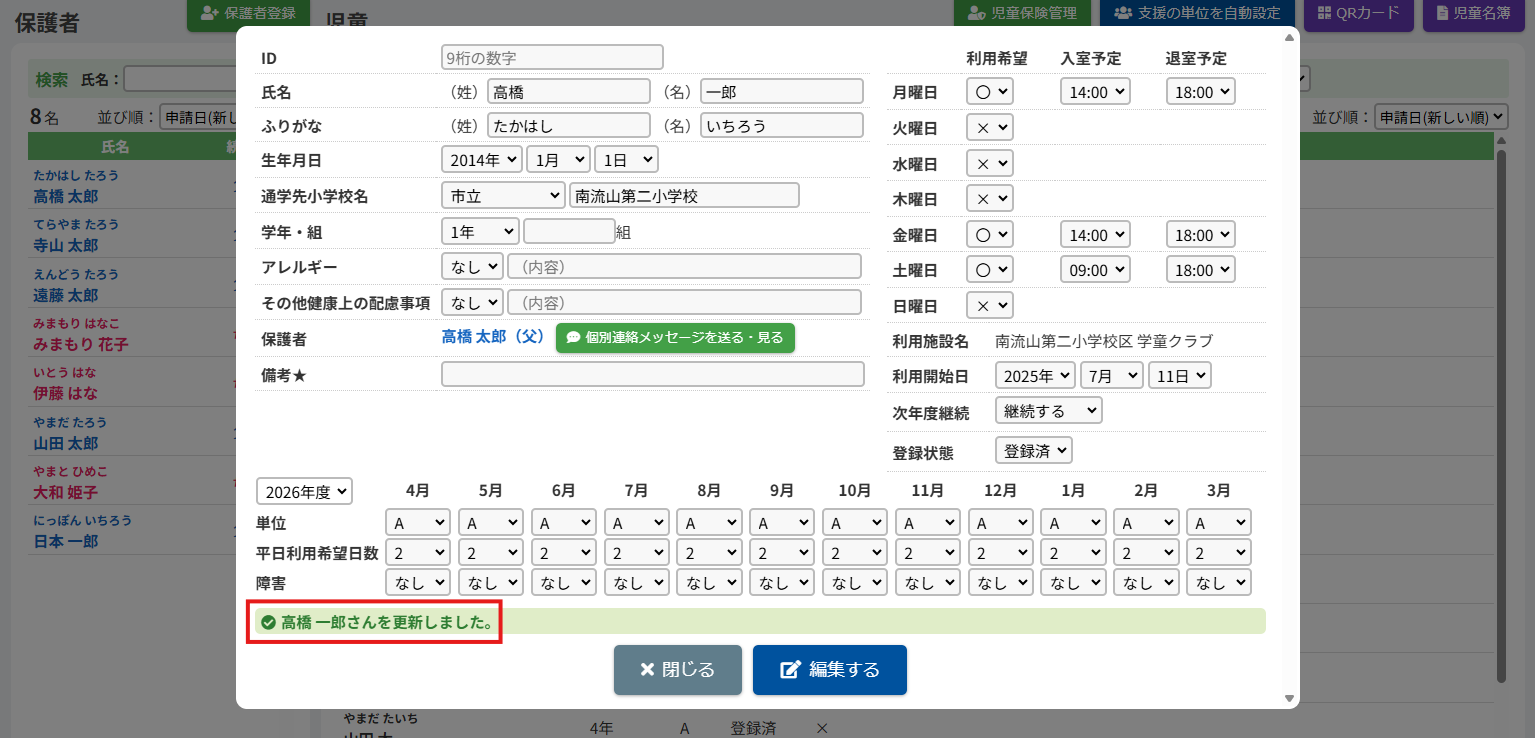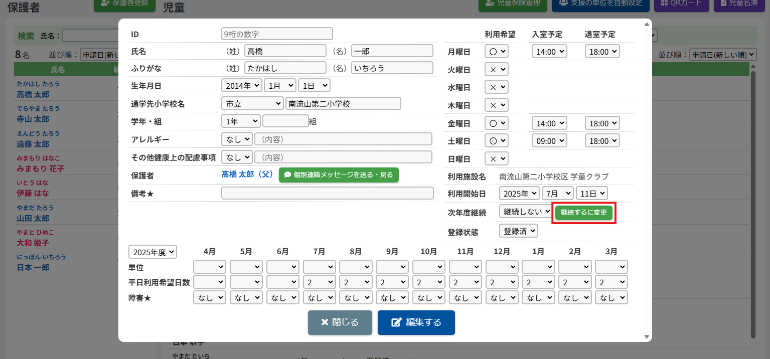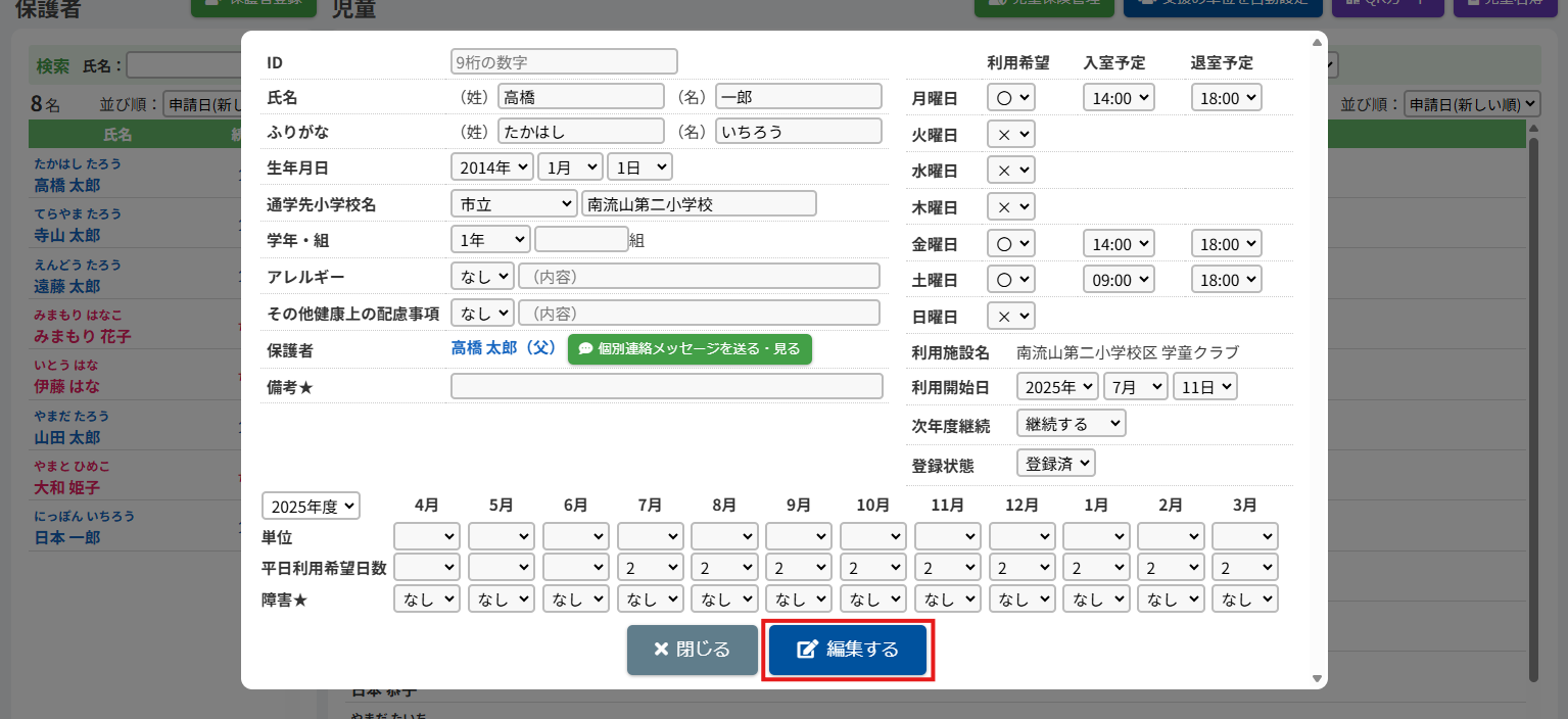 2.児童の登録内容を編集する